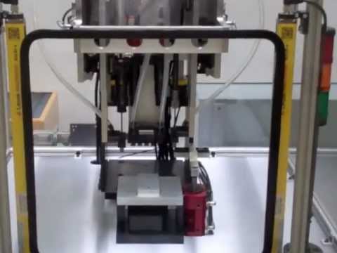 Automatic Nut Driver System. This machine increased production by 50%. The part is placed in the nest and the nut is driven down to torque.
